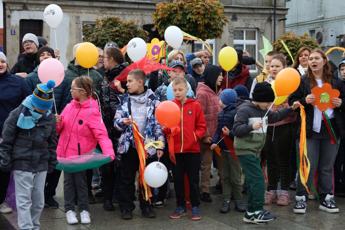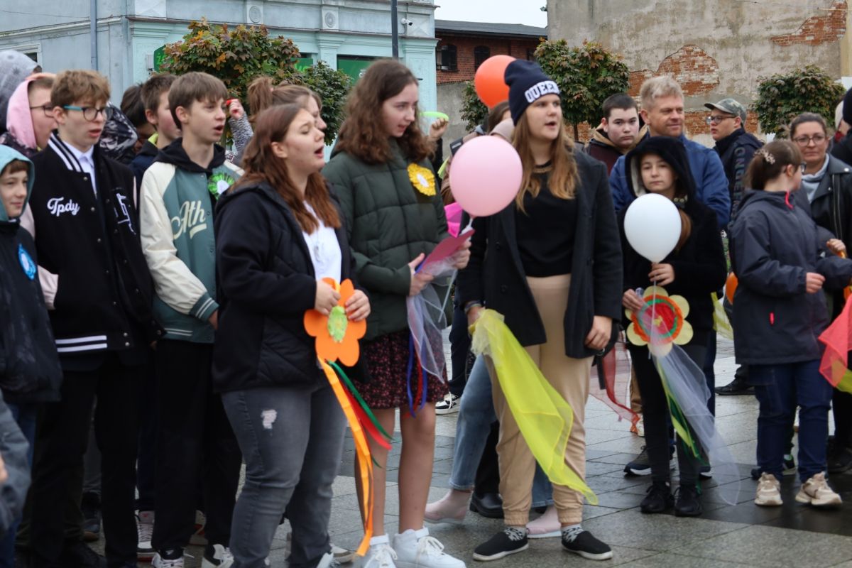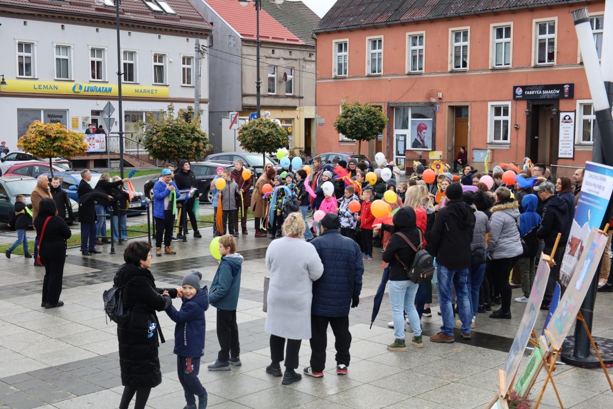Uroczystość rozpoczęła się barwnym przemarszem uczniów, nauczycieli i opiekunów, którzy wyruszyli sprzed budynku szkoły i przeszli ulicami miasta na Plac Wolności, niosąc kolorowe wstążki, przygotowane specjalnie na tę okazję. Radosny pochód wzbudził duże zainteresowanie mieszkańców i wprowadził wszystkich w świąteczny nastrój. Na Placu Wolności odbyła się dalsza część obchodów, pełna tańców, śpiewu i występów artystycznych, które wprowadziły uczestników w atmosferę wspólnej zabawy i wzruszeń. Uczniowie zaprezentowali także wystawę swoich dzieł malarskich, budząc zachwyt i uznanie zgromadzonych gości. Dyrektor placówki, Mariusz Czerwiński, serdecznie przywitał wszystkich zgromadzonych, dziękując za obecność i wieloletnie wsparcie. Następnie głos zabrali zaproszeni goście: Starosta Sępoleński Jarosław Tadych oraz dyrektor Wydziału Edukacji i Sportu Lidia Sokulska-Tłok, którzy przekazali prezent dla uczniów oraz złożyli ciepłe życzenia z okazji jubileuszu. Nie zabrakło również kolorowych akcentów Małgorzata Kotowska, pracownik Wydziału Edukacji i Sportu, rozdała dzieciom balony, które wraz z przygotowanymi wcześniej przez uczniów i nauczycieli kolorowymi wstążkami stworzyły barwną, radosną scenerię wydarzenia. Uroczystość przebiegła w niezwykle przyjaznej i radosnej atmosferze, pełnej muzyki, tańca i śpiewu. Do uczniów Ośrodka dołączyli również uczestnicy Warsztatów Terapii Zajęciowej w Sępólnie Krajeńskim wraz z opiekunami, wspólnie świętując tę wyjątkową rocznicę.
