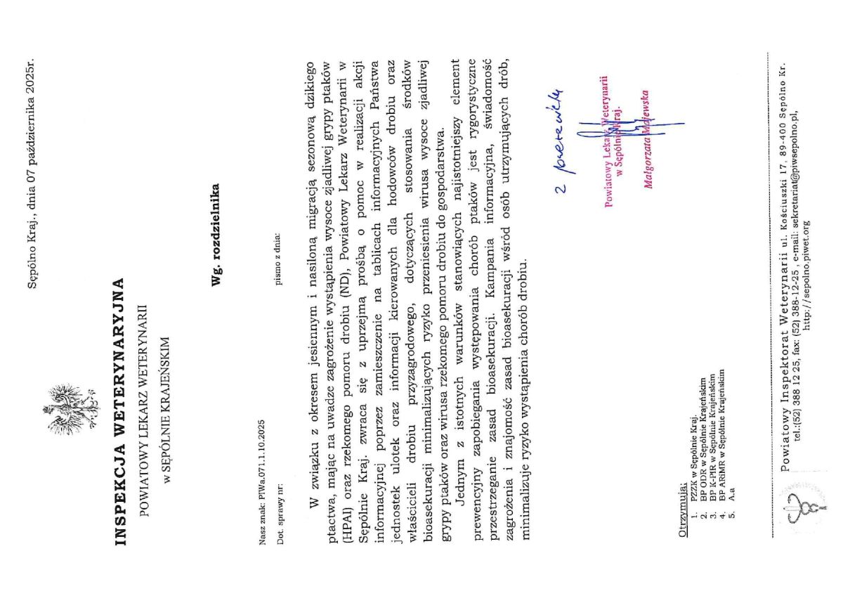 - autor: Powiatowa Lekarz Weterynarii w Sępólnie Kraj. - Małgorzata Majewska, data: 2025-01-28