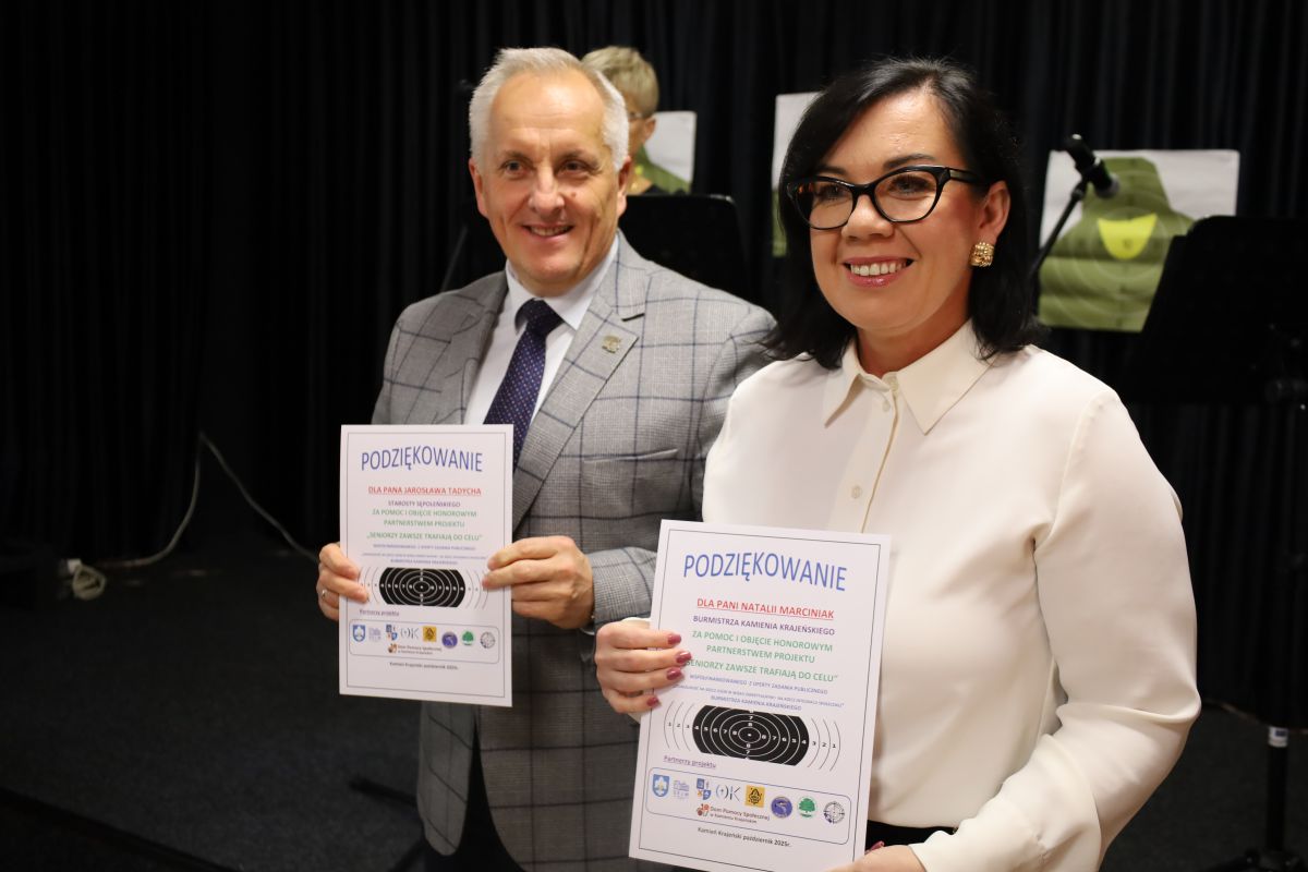 🎯 15 października w Miejsko-Gminnym Ośrodku Kultury w Kamieniu Krajeńskim odbył się finał projektu „Seniorzy zawsze trafiają do celu”, realizowanego z myślą o aktywizacji i integracji seniorów z naszego regionu. Projekt odbywał się przy współpracy: Kamieńskiego Bractwa Strzeleckiego i 3. Wielopoziomowej Drużyny Harcerskiej "Sokoły". Patronat honorowy nad projektem objęli: Poseł na Sejm RP Iwona Kozłowska, Poseł na Sejm RP Bartosz Kownacki, Starosta Sępoleński Jarosław Tadych oraz Burmistrz Kamienia Krajeńskiego Natalia Marciniak.
