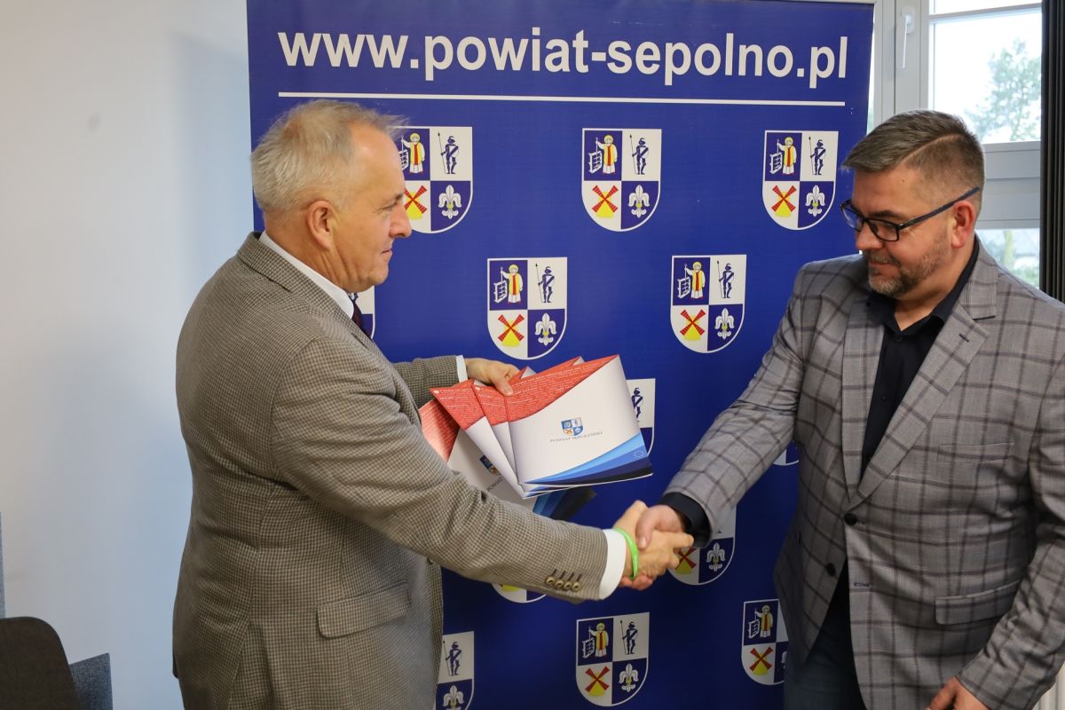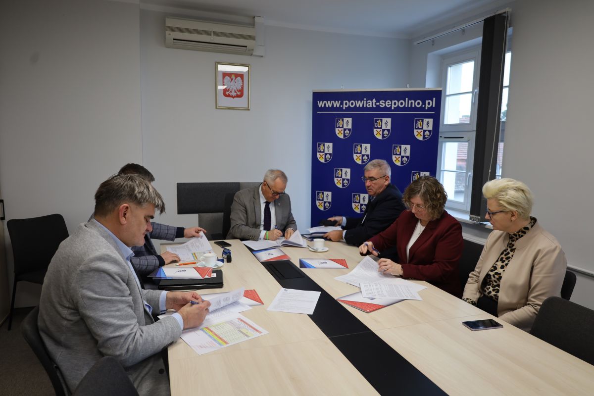 Dnia 3 listopada 2025 r. w Starostwie Powiatowym w Sępólnie Krajeńskim podpisano umowę na realizację zadania pn. „Zmiana sposobu użytkowania z przebudową i rozbudową budynków zlokalizowanych przy ul. Kościuszki 28 w Sępólnie Krajeńskim”. Zamówienie zostało podzielone na cztery części, a najkorzystniejszą ofertę w każdej z nich złożyła firma KMD Marek Dankiewicz z Kamienia Krajeńskiego. Wartości poszczególnych części przedstawiają się następująco: część I - 333 449,49 zł, część II - 82 865,95 zł, część III - 116 866,88 zł, część IV - 49 181,39 zł. W uroczystości podpisania umowy uczestniczyli Starosta Sępoleński Jarosław Tadych, Wicestarosta Sępoleński Jarosław Dera, Skarbnik Powiatu Małgorzata Masiłkin, Dyrektor Wydziału Geodezji i Kartografii Agnieszka Rembelska, Dyrektor Wydziału Architektury, Budownictwa i Rozwoju Tomasz Bondarczyk oraz wykonawca Marek Dankiewicz.